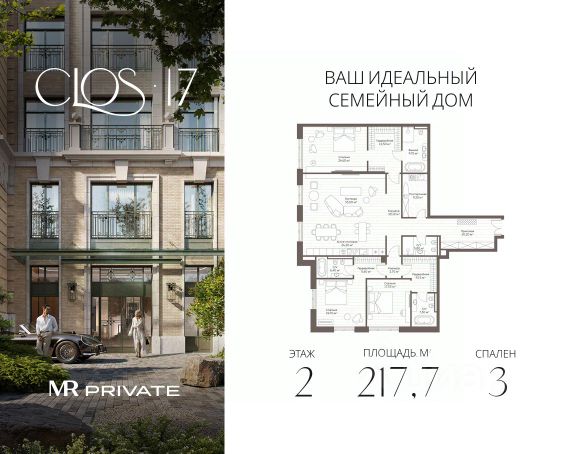 Продаётся 3-комнатная квартира общей площадью 217.70 м² без отделки на 2этаже клубного дома в центре Москвы. Clos 17 — клубный дом делюкс-класса от MR Private в Староваганьковском переулке. В проекте — 26 квартир площадью от 97 до 232 м² и два пентхауса с террасами, открывающими панораму на Кремль и Храм Христа Спасителя. Интерьеры вдохновлены парижскими ателье, но адаптированы к ритму Москвы — функциональные, просторные и изысканные. Окружение Clos 17 находится в самом сердце Москвы рядом с Кремлём, Домом Пашкова, Храмом Христа Спасителя и Третьяковской галереей. Благодаря локации внутри Бульварного кольца, резиденты дома получают доступ ко всем ключевым маршрутам столицы. Clos 17 — это уникальная точка притяжения для тех, кто стремится жить в центре событий, не жертвуя приватностью и комфортом. — 7 минут до Кремля — 10 минут до Большой Никитской — 8 минут до Пушкинского музея Внутренняя инфраструктура — Просторное дизайнерское лобби с потолками до 4 м — Собственный приватный сад в духе французских парков — Подземный паркинг на 30 машино-мест с увеличенными габаритами — Собственный SPA и фитнес-центр с бассейном — Умные системы безопасности и сервисы deluxe-класса.