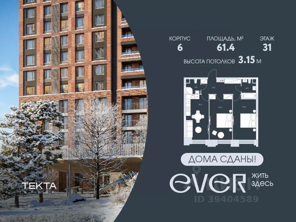 Жилой комплекс EVER — это гармоничное сочетание динамики мегаполиса и умиротворенности природы. Всего семь минут неспешной прогулки отделяют вас от станции метро ""Калужская"", обеспечивая быстрый доступ ко всем преимуществам жизни в Москве. Вернувшись домой, вы попадаете в атмосферу спокойствия и комфорта. Продуманная инфраструктура комплекса включает в себя не только уютные квартиры, но и удобный подземный паркинг, избавляющий вас от хлопот с поиском места для парковки, а также индивидуальные кладовые помещения, где можно хранить все необходимое.