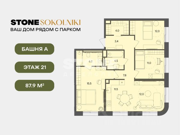 Старт продаж квартир в ЖК STONE SOKOLNIKI от девелопера STONE. В продаже просторная двуспальная квартира с кухней-гостиной и двумя спальнями для реализации любого дизайн-решения, идеально подходящая молодым парам, которые только планируют пополнение, а также небольшим семьям, где малыш уже подрастает. Современная архитектура проекта органично вписана в городскую среду. Концепция проекта разработана архитектурным бюро WALL Проект состоит из трех разновысотных башен высотой в 33, 28 и 24 этажа с чистой геометрией и увеличенной площадью остекления, которая позволит насладиться городской панорамой и видами на парк "Сокольники". Транспортная доступность - 10 мин. пешком до метро и БКЛ "Сокольники" и "Электрозаводская" - 12 мин. пешком до парка Сокольники - 10 мин. пешком до станции МЦД-3 "Митьково", которая позволит комфортно добираться в центр города и за его пределы Инфраструктура: В каждой входной группе предусмотрены помещения для временного хранения велосипедов, лапомойка, гостевой санузел, а также комната матери и ребенка. А колясочные появятся на каждом этаже - ведь это самое удобное решение для детей и их родителей. Планировочные решения: Планировки квартир в STONE Sokolniki создавались с учетом разнообразия современных сценариев жизни в городе. В проекте предусмотрены просторные кухни-гостиные, изолированные спальни с мастер-блоком, планировки для семей со взрослыми детьми, с двумя детьми разных возрастов. Благодаря грамотному зонированию квартир можно насладиться и временем с семьей, и уединением или, наоборот, устроить вечеринку вместе с друзьями. - Квартиры от 28 до 135 кв. м. Детский сад во дворе дома: Девелопер STONE осуществляет самостоятельный поиск оператора для детского сада, так как курирует наполнение проекта. На этапе финальной готовности будет выбран лучший оператор, отвечающий запросам качества и цены. Во всех своих проектах девелопер берет на себя ответственность за сдачу части помещений. Удобное хранение: В проекте STONE Sokolniki предусмотрена максимальная обеспеченность кладовыми. Хранения велосипедов в подземном паркинге возможно в зимний период, а летом будет организовано временное хранение на улице. Колясочные есть на каждом этаже всех трех жилых башен. - Колясочные на этаже - Кладовые для хранения Безопасная собственная территория дома, сим и паркинг: Внутри двора комфортно перемещаться пешком, все въезды в паркинг организованы по внешнему периметру. Велосипеды, самокаты и электросамокаты, детские беговелы и коляски - в приоритете, для всех колесных видов транспорта продуманы удобные маршруты движения и варианты хранения в разные сезоны. STONE - девелопер коммерческой и жилой недвижимости классов бизнес и премиум в Москве с 18-летним опытом. С 2022 года занимает лидирующую позицию на офисном рынке (рейтинг РБК). Сегодня в портфеле девелопера представлено 2,5 млн кв. м построенных, строящихся и проектируемых объектов, из которых более 850 тыс. кв. м находятся в стадии строительства. Компания имеет самый