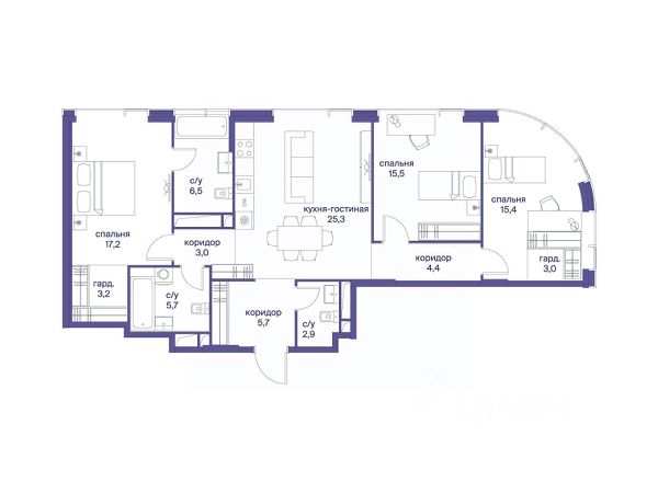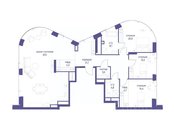 В престижном районе Пресня, на перекрестке делового и исторического центров Москвы, продается трехкомнатная квартира площадью 100.90 кв. м без отделки. Квартира находится на 4 этаже 11-этажного дома, в новом элитном жилом комплексе "Начало" от девелопера "Донстрой". Реализация проекта запланирована на 1 квартал 2030 года. Начало - футуристический дом на Пресне в нескольких минутах от Сити и Садового кольца. Проект по-настоящему космического масштаба, где есть все, чтобы раскрыть себя и свои возможности. Расположение Пресня - один из самых престижных районов Москвы. Жить здесь - значит стать частью истории столицы, быть в эпицентре деловой активности города и ощущать, как сама Вселенная вращается вокруг вас. - 5 минут пешком до Красногвардейских прудов; - 15 минут пешком до ст. метро "Улица 1905 года"; - 6 минут на автомобиле до Садового кольца и небоскрёбов "Москва-Сити"; - 12 минут на автомобиле до Кремля. Архитектура как путешествие Как росток пробивает скалу, как растет кристалл, как ракета устремляется ввысь - так формируется архитектурный образ этого дома. Точно выверенный баланс между футуристичными формами и функциональным содержанием дома выводит жизнь в нем на новую орбиту. Стеклянные фасады отражают небо и город, превращая здание в зеркало для окружающего ландшафта. Двор между небом и землёй Просторная территория двора с тремя тематическими зонами отдыха: "Млечный путь" - для детских игр и развлечений; "Космический сад" - для тихого отдыха и релакса; "Метеоритный сад" - для любителей спорта. Открытый променад - сквозной маршрут на крыше стилобата с зонами отдыха, занятий спортом, детских игр и совместной работы. Все площадки плавно связаны между собой прогулочной дорожкой. Теплая кольцевая галерея и мосты над пространством двора - все корпуса "стыкуются", точно модули космической станции. Главный центр притяжения В составе проекта возводится собственный комьюнити-центр, где создана идеальная атмосфера для любых начинаний: - Детский клуб для будущих покорителей Вселенной; - Коворкинги для решения задач планетарного и космического масштабов; - Переговорные для судьбоносных и просто важных встреч; - Лаунжи с атмосферой дзена и релакса; - Библиотека для спокойного чтения; - Кинотеатр для классики и блокбастеров. Территория комфорта и приватности Всё нужное рядом: - Современный образовательный центр со школой и детским садом - для ваших детей; - Фитнес-центр с бассейном - для релакса и борьбы со стрессом; - Ресторанная улица: кафе, рестораны, летние террасы - для деловых обедов и семейных ужинов; - Пекарня и минимаркет в доме - для ежедневных покупок; - Сквер у дома - для неспешных прогулок и спокойного отдыха; - Никаких такси на улице. Машина заберет вас прямо в подземном паркинге вашего корпуса. Продается 3-комнатная квартира первичка на улице Сергея Макеева в Москве.