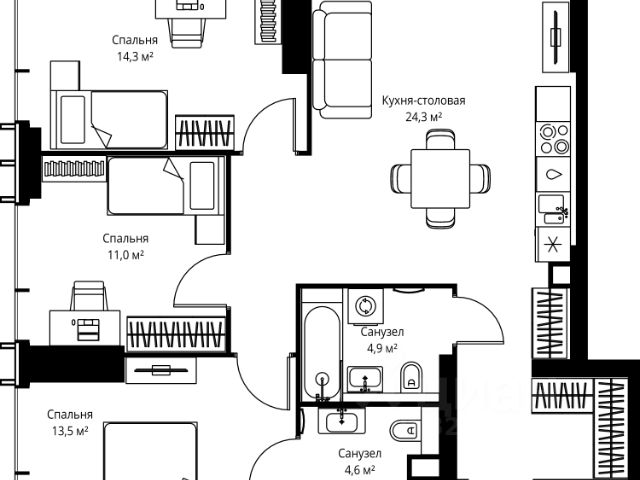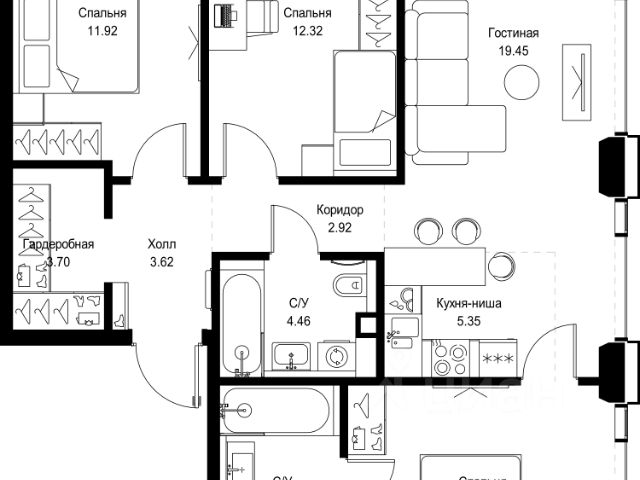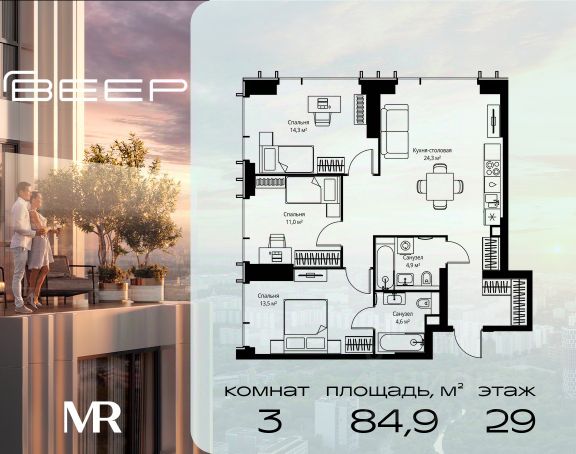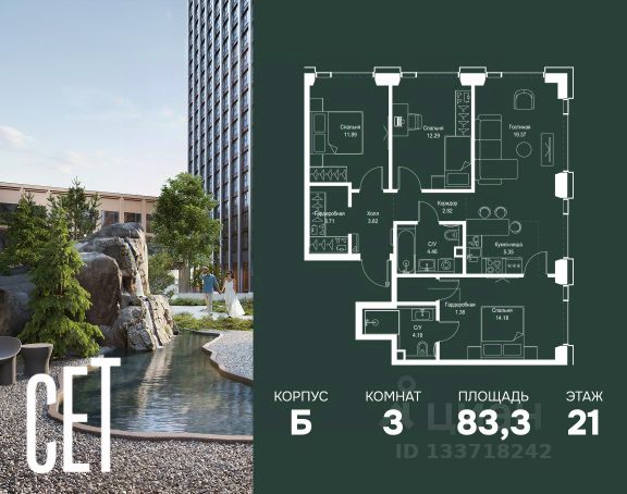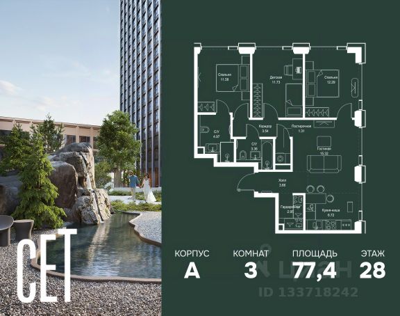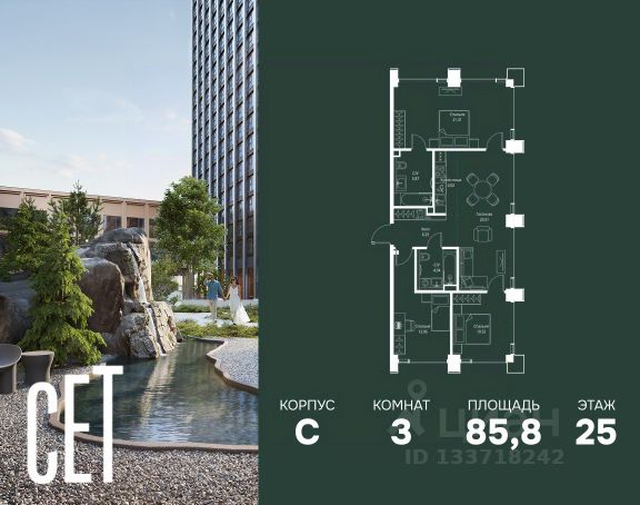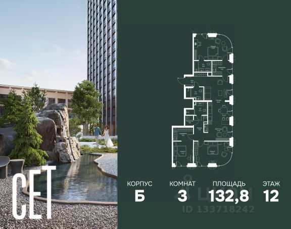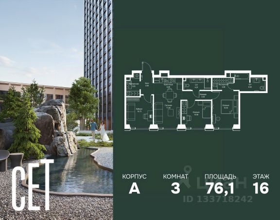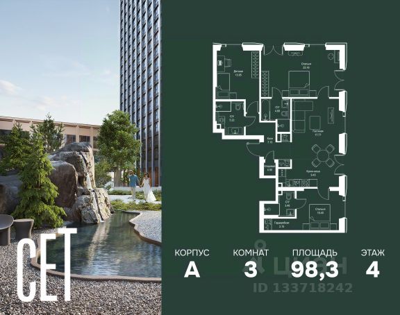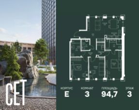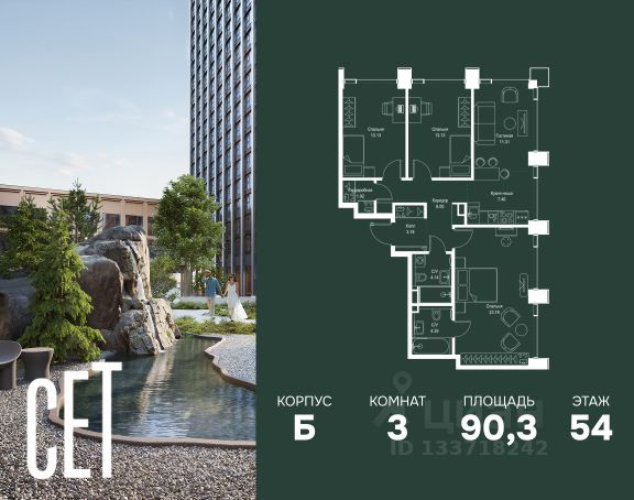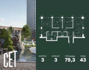 Прямая продажа от застройщика. В ЖК Сет продается 3-комнатная квартира площадью 90.31 м², расположенная в корпусе Б, на 54 этаже 59 этажного дома. Сет имеет стратегически выгодное расположение в ЗАО, в районе с большой историей и блестящим будущим: между природной зоной долины реки Сетунь и Кутузовским проспектом. В рамках возведения первой очереди предусмотрено три корпуса высотой 18, 45 и 59 этажей. На верхних этажах спроектированы общедоступные смотровые площадки с панорамным обзором на центр столицы. Преимущества проекта: • Функциональные планировочные решения • Контроль проникновения через входную дверь • Система управления освещением и температурой в квартире • Система защиты от протечек с функцией перекрытия воды • Вход в подъезд по биометрическим считывателям Face ID • Скоростные лифты • Двухуровневый подземный охраняемый паркинг на 495 машино-мест Застройка Сет включает в себя не только жилые корпуса, но и инфраструктурные объекты. Все необходимое для повседневного комфорта будет расположено в шаговой доступности: • Фитнес-Клуб с бассейном • Ведущая городская школа, детский сад и школа искусств • Центр культуры и досуга • Медицинский центр • Кафе и рестораны Расположение комплекса: Пешком: • Метро "Давыдково" - 17 минут • Парк "Долина реки Сетунь" - 3 минуты • Открытие новых станций метро в шаговой доступности в будущем Инфраструктура: Разнообразить свой день резиденты Веер смогут также проводя больше времени на свежем воздухе. Двор разделен на 4 зоны разных эмоций и действий, которые пересечены и соединены веерными прогулочными маршрутами: • Спортивная площадка устроена в глубине ""Кленовой рощи"" • В ""Чайном домике"" будет создан навес с утеплением для отдыха в любую погоду • Площадки для детей воплотятся в ""Волшебный лес"" с цветами, зеркалами и световым дизайном • ""Центральная площадь"" устроена у водного оазиса живописного пруда. На машине: • "Москва-Сити" - 15 минут • Садовое кольцо - 20 минут • ТЦ "Океания" - 8 минут • ТЦ "Времена года" - 13 минут • Сколково - 12 минут • Гребной канал - 17 минут Компания MR предлагает своим клиентам специальные условия приобретения квартир в рамках программ ипотечного кредитования от банков-партнеров. Продается 3-комнатная квартира первичка на улице Верейская в Москве.