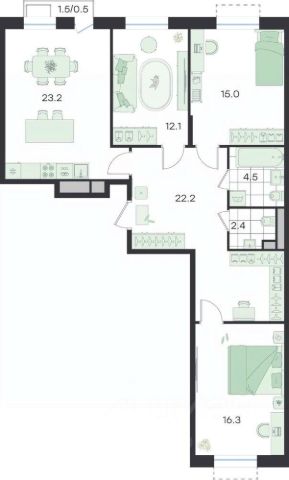 Продаётся 3-комнатная квартира в строящемся доме (Театральный, к2), срок сдачи: II-кв. 2026, общей площадью 95.1 кв.м., на 2 этаже. Бутик-квартал "G3 Театральный"