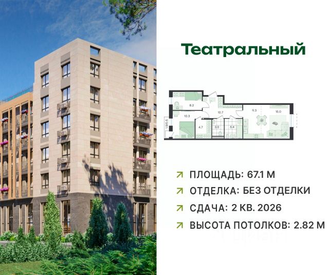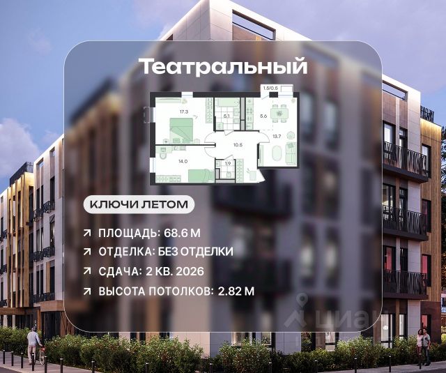 В современном квартале бизнес-класса ЖК "Театральный" продаётся 3-комнатная квартира, общей площадью 68.6 кв.м, расположенная на 5 этаже (корпус 2, секция 2). ЖК "Театральный" — это малоэтажный загородный квартал в Раменском городском округе Московской области, расположенный в окружении вековых сосен, с уникальным ландшафтным двором. Отличная транспортная доступность: - 500 метров от МЦД-3 "Ильинская"; - 8 км до выезда на Новорязанское шоссе; - 16 км от МКАД. Удачное расположение: - живая сосновая роща; - лесопарк "Треугольный" и Цаговский лес; - 12 минут на машине до городского парка; - 10 минут на машине до города Жуковский. Развивающаяся инфраструктура: На территории квартала появятся свой детский сад, спортплощадки, игровые зоны, магазины и многое другое необходимое для жизни. В шаговой доступности находятся поликлиника, школы, детские сады, фитнес-клубы. В каждом подъезде устроены зоны для хранения колясок и велосипедов, розетки для электросамокатов, лапомойки для домашних питомцев. Паркинг с зарядкой для электромобилей. Квартиру можно приобрести по выгодным ипотечным условиям от крупнейших российских банков — Сбербанк, ВТБ, Росбанк. Ключи летом 2026 года.