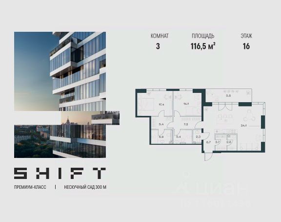 3-к квартира в премиальном комплексе SHIFT на 6-м этаже в 18 этажном здании. Общая площадь 96.4 кв. м. SHIFT - новый премиальный проект от девелопера PIONEER в Донском районе, в 300 м от Нескучного сада. Главная особенность проекта - 5 башен, в которых воплощен принцип модульной архитектуры: каждый этаж смещен относительно предыдущего, что создает эффект парящих в воздухе граней. Архитектура SHIFT создана самым востребованным бюро Москвы - "Цимайло Ляшенко и Партнеры". У жилого квартала удобное расположение: Ленинский проспект ведет прямо к Садовому кольцу и в центр, а быстрый выезд на ТТК станет ключом к любому району Москвы. Многообразие сервисов и коммерческих помещений создает в SHIFT всю необходимую инфраструктуру: кафе и рестораны, супермаркет и многое другое. Преимущества проекта: - Потолки от 3,65 м - Панорамные окна и террасы - Приватный ландшафтный двор-парк 4 000 м2 - Коммерческая инфраструктура 4 000 м2 - Клубная инфраструктура 350 м2 Девелопер: За 24 года на рынке недвижимости компания PIONEER реализовала более 30 проектов. Сегодня PIONEER - девелопер премиальной недвижимости с 4 проектами класса премиум и делюкс. Звоните, и мы с удовольствием расскажем все подробности о проекте и условиях покупки. Продажа от застройщика. Покупка доступна в ипотеку.