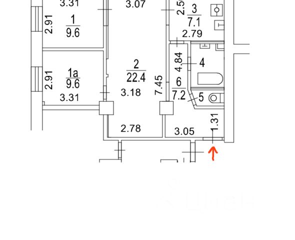 По документам 2-х комнатная, но по факту 3-х за счет перестройки большого коридора.