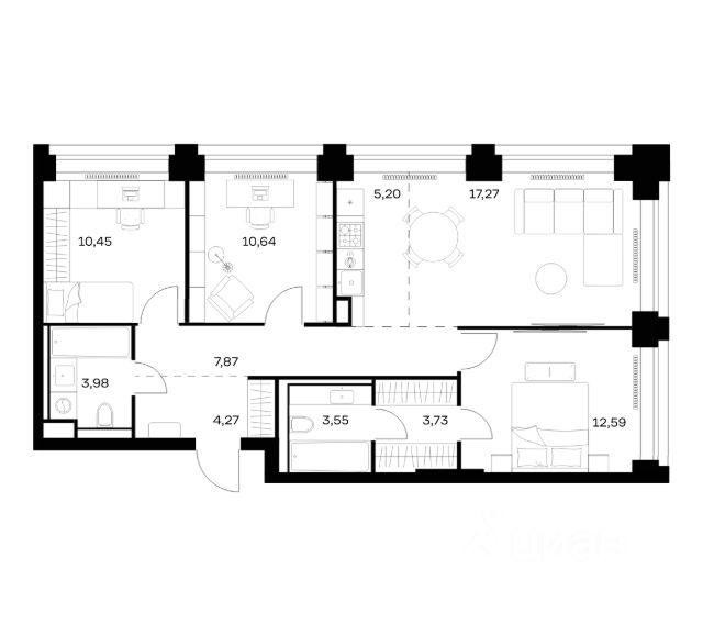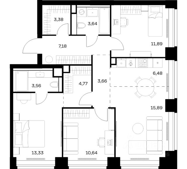 Комфортная и продуманная до мелочей 3-спальная квартира площадью 100.00 кв. м на 14 этаже в клубном доме 13. Увеличенная площадь окон и высота потолков 3.00 м дарят впечатляющие виды на парки, зеленые зоны и природные заказники. West Garden - это собрание клубных домов высотой 12-14 этажей в собственном парке 16 гектаров вдоль реки. Просторный среднеэтажный квартал расположен на Минской улице, в респектабельном Западном округе столицы. Вокруг премиальное окружение и более 1000 гектаров парков. West Garden - это возможность обеспечить себе и своей семье лучшие условия для жизни в одном из самых привлекательных и зелёных районов столицы. Гармония природы дополнена здесь впечатляющими возможностями и привилегиями: • Расположение в зелёном Западном районе столицы вблизи центра и ключевых магистралей в окружении парковых зон (заказник "Долина реки Сетунь", Мосфильмовский пруд, Ботанический сад МГУ, природный заказник "Воробьёвы Горы", Парк Победы на Поклонной горе) • Современная лаконичная архитектура, у каждого дома свой индивидуальный облик и выразительный фасад с использованием натуральных и долговечных материалов (гранит, известняк, клинкерный кирпич) • Функциональные лобби с отделкой из дерева и натурального камня с высокими потолками до 7,8 м • Самый большой собственный парк для прогулок и отдыха: 8 га собственной закрытой и благоустроенной территории, а также 8 га прилегающего парка на набережной с зонами отдыха с шезлонгами, маршрутами для бега, пеших и велосипедных прогулок • Инфраструктурный центр Clubhouse только для жителей: клубная гостиная с террасой и творческой атмосферой по фирменному стандарту Friend`s Lab, детская игровая зона 300 кв. м по стандарту Kid`s Lab • Насыщенная и разнообразная инфраструктура для детей любого возраста: 8 развивающих детских площадок в парке, 3 детские площадки на благоустроенной набережной, площадка для отдыха и досуга подростков • Спортивная инфраструктура по стандарту Fit Lab: многофункциональные площадки для футбола, баскетбола, волейбола с трибуной для болельщиков, зона воркаута, теннисные столы, зона для йоги, беговая дорожка 3 километра, фитнес-центр только для жителей • Комфортный и просторный подземный паркинг на 1313 машино-мест, 482 келлера, автомойка только для жителей на четыре поста