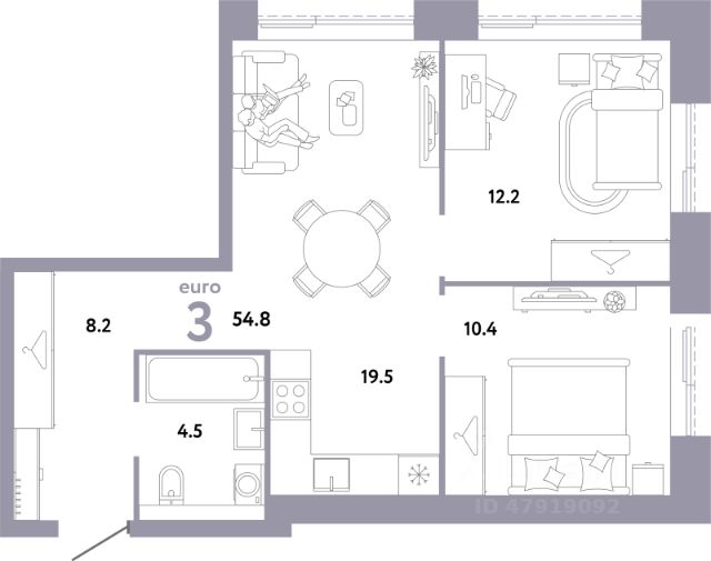 🔷 Площадь недвижимости: от 48,4 м² до 91,9 м²