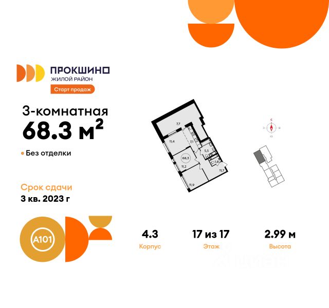 Продается трехкомнатная квартира 516 в новостройке Жилой квартал "Прокшино" по адресу Москва, ТиНАО, Новомосковский АО, Сосенское С/П, улица Лобановский Лес, 13, район Коммунарка, Новомосковский административный округ, Москва. Общая площадь квартиры - 68.30 кв. м., этаж 17 из 17, секция 3. Тип проекта, по которому построен дом - монолит, компания-застройщик - ООО "А101". Стоимость квартиры - 29593024 Р. ПРЕДЛОЖЕНИЯ ОТ ЗАСТРОЙЩИКА В ФЕВРАЛЕ 2026: Скидки до 10% на все квартиры. Только в офисах продаж до 28 февраля. Ипотека от 13,9 % для всех! На весь срок. "Семейная ипотека" вернулась. Ставка от 3,5 % на весь срок! Без удорожания! Выгодное ипотечное комбо: Ипотека от 2200 р./мес. и от 6 % после рождения ребёнка! Ипотека для всех "Держи пять!" - ставка 5 % на 2 года! *более подробную информацию по скидкам и акциям уточняйте в отделе продаж ЖК "Прокшино" строится на юго-западе Москвы всего в 500 м от одноимённой станции метро, что обеспечивает быстрый и удобный доступ в любую точку столицы. Вдоль живописного пруда почти на километр протянулась благоустроенная набережная. Монолитные дома комфорт- и бизнес-класса - узнаваемой выразительной архитектуры, с архитектурно-художественной подсветкой фасадов. Пешеходный мост через пруд - украшение района и главный путь от метро. На берегу обустроены зоны отдыха с качелями, деревянными настилами, шезлонгами и тренажёрами. Зелёные дворы свободны от машин. В районе реализуется проект благоустройства "Природа - в каждый двор!". Рядом с "Прокшино" появятся всесезонный горнолыжный курорт, аквапарк с дайвинг- и сёрфинг-центром. Развивается крупный бизнес-квартал. В пешей доступности от дома открываются детские сады, активно строится новое здание одной из лучших школ Москвы. Работают магазины, кафе, бытовые сервисы. Через район проходят веломаршруты и прогулочные дорожки. Преимущества "Прокшино": - 500 м до метро "Прокшино" - благоустройство "Природа - в каждый двор!" - набережная Хованского пруда - уникальная инфраструктура - "Школа Ямбурга" (топ-50 Москвы)