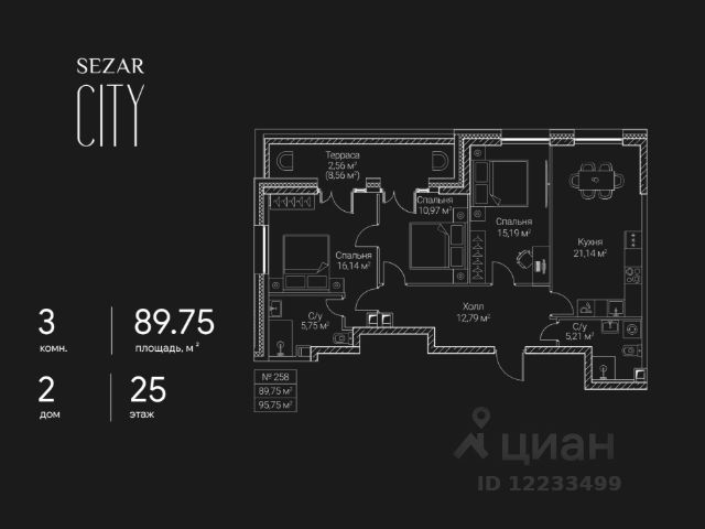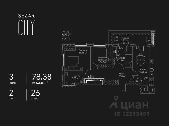 Продается 3-комнатная квартира в ЖК SEZAR CITY на 11 этаже. Общая площадь квартиры составляет 87,41 кв.м. Квартира без отделки. Срок сдачи - 2027 год. Архитектурный облик SEZAR CITY в полной мере выражает глубокую философию ар-деко, в основе которой - красота, удовольствие и комфорт. Облик каждого дома деликатно продолжает традиции величественной архитектуры зданий на престижных магистралях Москвы. В рельефной пластике экстерьеров корпусов особенно эффектно выделяется арочный стиль. Комбинации материалов и форм, обилие элементов декора придают фасадам зданий собственный неповторимый облик и изысканно дополняют их грацию. Планировки всех квартир спроектированы по стандартам премиум-класса, когда функциональность помещений дополняет высокий комфорт проживания. Элементы лобби тщательно продуманы, чтобы впечатлять и вдохновлять. Пространство каждого лобби оформлено дорогими материалами и мебелью. В большинстве квартир предусмотрены эркеры и просторные лоджии. Для комфорта жителей предусмотрен подземный паркинг с кладовыми помещениями и автомойкой. В каждом лобби расположена стойка консьержа. В концепции приватных дворов лежат узнаваемые элементы и формы классических парковых пространств, в т. ч. амфитеатры, аркады и галереи. SEZAR CITY - новый проект компании, в полной мере сочетающий в себе все качества недвижимости особой ценности. Преимущества локации: - Хорошевский район - это престижный и динамично развивающийся район Москвы с богатой историей. Здесь открываются транспортно-пересадочные узлы, строятся деловые кластеры, создаются новые общественные пространства и парки. - SEZAR CITY находится в самом центре Большого Сити. Концепция развития этой территории предусматривает формирование принципиально нового городского центра с современной общественно-жилой застройкой. Позвоните сегодня в офис продаж, и мы с удовольствием пригласим вас в гости. Менеджер подробно расскажет о преимуществах жилого комплекса за чашкой ароматного кофе. Продается 3-комнатная квартира с балконом в районе Хорошевский в Москве.