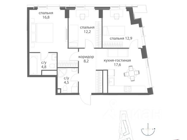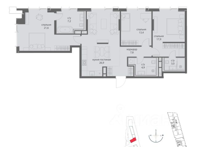 Около 10 минут до Москва Сити и ТТК! В продаже 3-к квартира от застройщика. Общая площадь 76, жилая 20.9, кухня 55.1. Квартира расположена на 7 этаже жилого квартала "Событие-6", корпус 2, Секция 4. Квартира без отделки. Срок сдачи: 4 кв. 2029 года. СОБЫТИЕ.6 — финальный дом парк квартала СОБЫТИЕ на Мосфильмовской, созданный для тех, кто хочет "заняться жизнью" здесь и сейчас и получать максимум от каждого дня. Стильная архитектура, продуманное благоустройство и богатый набор общественных пространств делают дом естественной сценой для ярких личных событий. Архитектура от бюро Atrium на базе дизайн кода британских LDA Design и UHA London. Лучшая новостройка страны 2025 года! Расположение: • Около 710 минут пешком до станций метро "Аминьевская" и "Мичуринский проспект" (в зависимости от маршрута) • Около 15 минут до Садового кольца • Около 25 минут до аэропорта Внуково • Рядом — ключевые магистрали (Кутузовский, Мичуринский, Ломоносовский проспекты, Аминьевское шоссе), что упрощает выезды как в центр, так и за город Инфраструктура "всё у дома" Главный центр притяжения — модный парк "Событие" от бюро Wowhaus. Благоустроенный бульвар и рекреационные зоны занимают около половины территории квартала, а природная часть парка площадью более 12 гектаров уже открыта. В парке проложены: • примерно 1,5 км беговых дорожек • около 2,7 км велодорожек • около 1,6 км экотропы • детские и спортивные площадки, места для пикника, лекторий, декоративный огород, восстановленные биотопы • Парк "Событие" — финалист конкурса Правительства Москвы в номинации "Строительство парков и общественных пространств" Мультидвор Двор СОБЫТИЯ.6 — это мультимодальное пространство для жителей всех возрастов. Здесь предусмотрены: • игровые и развивающие площадки для малышей и детей постарше • воркаут зоны, площадки для игр с мячом и йоги для активных взрослых • мини бульвар с фонтаном для прогулок • террасы, амфитеатры и лаунжи для спокойного отдыха и встреч • Комьюнити террасы и общественные пространства на кровле 10 этажа Внутри дома предусмотрен полный набор общественных пространств: • детская игровая комната и детский клуб • спортрум / фитнес рум • коворкинг и комнаты для занятий с репетитором • дизайнерские лаунж зоны для деловых и личных встреч Район и окружение: парки, университеты, спорт Район относится к числу самых экологичных в Москве: он буквально утопает в зелени парков и заповедников. В окружении — парк "Событие", природный заказник "Долина реки Раменки", Воробьевы горы, Матвеевский лес, парк 50 летия Октября, парк Олимпийской деревни, Вороновский парк, набережные Москвы реки, заказник "Долина реки Сетунь". Это настоящая "интеллектуальная миля" Москвы: рядом МГУ имени М. В. Ломоносова, ботанический сад МГУ, театр им. Н. И. Сац, Новодевичий монастырь, стадион "Лужники", Парк Победы и другие знаковые объекты. Район особенно комфортен для сторонников ЗОЖ: множество мест для бега, велопрогулок, спорта на открытом воздухе и занятий в