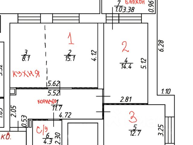 Планировка: 3 изолированные комнаты.