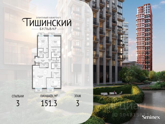 В продаже 3-комнатная квартира квартира в элитном квартале "Тишинский бульвар". Общая площадь квартиры - 112.90 кв.м. Этаж 12 из 14. Корпус Ивовый 6. "Тишинский бульвар" - тихий зелёный элитный квартал на Тишинке, в престижном и комфортном районе центра Москвы. В нём создан уникальный для элитного дома прогулочный бульвар в своём огромном парке 1,9 га. В парке оборудованы зоны для активного и тихого отдыха, крытые галереи, приватные зелёные комнаты, многофункциональная спортивная площадка, воркаут-зона, детская площадка, сухой фонтан, ручей. В пешей доступности Римско-католический кафедральный собор. Всего в полутора километрах от квартала находятся Патриаршие пруды - излюбленное место для летних прогулок, воскресных бранчей и романтических ужинов. Белая площадь расположена ещё ближе - на расстоянии 1,2 километра. Это точка концентрации деловой жизни и модных ресторанов. В "Тишинский бульваре" только для жителей и их гостей создан уникальный для элитного дома прогулочный бульвар в собственном огромном парке площадью 2,1 га, который занимает 70% территории квартала. Бульвар проходит через весь квартал и объединяет в общее пространство три двора: Кленовый, Рябиновый и Ивовый. В парке созданы крытые галереи и приватные зелёные комнаты для отдыха и медитаций в любую погоду. Насыщенное озеленение многолетними растениями с разными периодами цветения сохраняет территорию квартала красивой круглый год. В квартале насыщенная инфраструктура только для жителей, включая Clubhouse. Здесь оборудованы пространства для здорового образа жизни по стандарту FIT LAB: в парке - многофункциональная спортивная площадка, воркаут-зона, место для занятий йогой и медитации; бесплатный фитнес-клуб с бассейном. Для маленьких жителей доступны детская площадка и игровая комната по стандарту KIDS LAB. Дома оснащены самыми полными и лучшими системами. 3-комнатная квартира с балконом рядом с метро Краснопресненская.