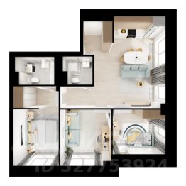 + 15,2 м2 свежесмонтированного антресольного этажа с парящей в воздухе консольной лестницей в вместительной гостиной = 3Е / 62,5 м2, с балконом, двумя изолированными спальными комнатами и беспрепятственностью дизайнерской мысли