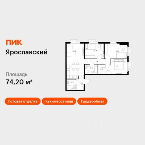 Продаётся 3-комн. квартира площадью 74,2 кв.м на 15 этаже 25 этажного дома (Корпус 16.1, Секция 1) проекта ПИК Ярославский. Светлый просторный подъезд на уровне земли, функциональная планировка, большие окна, c отделкой. Жилой район "Ярославский" находится в Мытищах, в шести километрах от МКАД. В 15 минутах на автобусе - платформа Мытищи, а в 20 минутах - метро "Медведково". В "Ярославском" заселены 25 жилых домов, открыты четыре детских сада, поликлиника, три школы, в том числе одна из самых больших в Московской области. Работает спортивная школа с инклюзивным образованием. Скоро будет построен детский сад на 300 малышей и пешеходный бульвар. Кроме того, на территории проекта появится уникальная игровая площадка - PlayHub "Акведук". Гулять здесь одинаково понравится как детям разного возраста, так и мамам с колясками. Главные объекты на площадке - двухуровневые игровые акведуки с башней, горками, песочницей и лазилками. Вокруг "Ярославского" четыре лесопарка, поблизости благоустроенная набережная реки Яузы и Рупасовские пруды. Мытищи - развитый город рядом с Москвой: здесь хорошая экономическая ситуация, несколько научно-исследовательских институтов, есть крупные промышленные предприятия. Артикул 907995 (Застройщик ООО "Загородная усадьба")