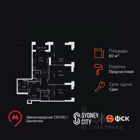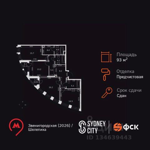 Цена указана с учётом скидки при 100%-й оплате, несубсидированной ипотеке, рассрочке (кроме программы "Рассрочка 0%"). В жилом квартале продаётся 3-комнатная квартира площадью 75.90 кв.м white box. Квартира расположена на 15 этаже 48 этажного корпуса 1 в жилом комплексе комфорт класса Левел Звенигородская (компания Level Group/Левел групп). Отличная транспортная доступность - 5 мин. пешком до метро "Звенигородская" (откроется к окончанию строительства); - 18 мин. пешком до станции МЦК "Хорошёво" и станции БКЛ "Народное ополчение"; - 4 мин. на авто до ТТК; - 8 мин. на авто до Садового кольца; - 15 мин. на авто до Кремля. Продуманный архитектурный проект - Концепция от студии Станислава Михаловского, в основу которой легло единение природы и города; - Двухкамерные стеклопакеты в окнах, алюминиевый и ПВХ профиль - в квартирах тепло зимой и прохладно летом; - С верхних этажей откроются панорамные виды на город, Москву-реку, "Москва-Сити" и Москворецкий парк; - Лобби со всеми удобствами: окна в пол, высокие потолки до 4,7 м, лаунж-зоны, колясочные, гостевые санузлы и мойки для лап животных; - Централизованные водонагреватели гарантируют круглогодичную подачу горячей воды в каждую квартиру. Благоустройство Концепция благоустройства разработана совместно с бюро UNK landscape. Высота башен приближается к 200 метрам - они словно касаются неба. Небесный простор проецируется на территорию двора с помощью подсветки, визуально увеличивая пространство и отражаясь в авторских элементах архитектуры. На территории площадью 0,45 га расположатся: - "Облако событий" - место встреч и общения; - "Облако спорта" - всё для поддержания себя в форме; - "Облако принятия решений" - пространство для работы на свежем воздухе; - "Облако спокойствия" - для отдыха в тишине природы; - "Облако игр" - площадки для подростков и самых маленьких. Инфраструктура В жилом комплексе откроется 21 коммерческое помещение: продуктовые лавки, кафе, салоны красоты, службы доставки и творческие студии. Этап 1 включает строительство двухуровневого подземного паркинга. Всего здесь расположится 351 машино-место, включая семейные места, и 264 кладовых помещения. В распоряжении жителей развитая инфраструктура района: 15 супермаркетов, 5 спортивных объектов, 9 медучреждений, 7 детских садов, 4 школы, 3 благоустроенных парка - всё в шаговой доступности. Инженерия Комфортное перемещение внутри домов будут обеспечивать надёжные лифты с доступом в паркинг с жилых этажей. В каждом корпусе предусмотрено до шести кабин, включая сервисные лифты. Попасть на территорию комплекса можно только по единому ключу доступа. Видеонаблюдение установлено на входах в подъезды, в лобби, в общих зонах, на въезде в паркинг. Гости смогут связаться с жителями дома через входные видеопанели, а управлять доступом на территорию можно через видеодомофон или приложение на телефоне.