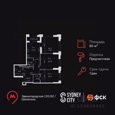 Цена указана с учётом скидки при 100%-й оплате, несубсидированной ипотеке, рассрочке (кроме программы "Рассрочка 0%"). В жилом квартале продаётся 3-комнатная квартира площадью 75.90 кв.м white box. Квартира расположена на 15 этаже 48 этажного корпуса 1 в жилом комплексе комфорт класса Левел Звенигородская (компания Level Group/Левел групп). Отличная транспортная доступность - 5 мин. пешком до метро "Звенигородская" (откроется к окончанию строительства); - 18 мин. пешком до станции МЦК "Хорошёво" и станции БКЛ "Народное ополчение"; - 4 мин. на авто до ТТК; - 8 мин. на авто до Садового кольца; - 15 мин. на авто до Кремля. Продуманный архитектурный проект - Концепция от студии Станислава Михаловского, в основу которой легло единение природы и города; - Двухкамерные стеклопакеты в окнах, алюминиевый и ПВХ профиль - в квартирах тепло зимой и прохладно летом; - С верхних этажей откроются панорамные виды на город, Москву-реку, "Москва-Сити" и Москворецкий парк; - Лобби со всеми удобствами: окна в пол, высокие потолки до 4,7 м, лаунж-зоны, колясочные, гостевые санузлы и мойки для лап животных; - Централизованные водонагреватели гарантируют круглогодичную подачу горячей воды в каждую квартиру. Благоустройство Концепция благоустройства разработана совместно с бюро UNK landscape. Высота башен приближается к 200 метрам - они словно касаются неба. Небесный простор проецируется на территорию двора с помощью подсветки, визуально увеличивая пространство и отражаясь в авторских элементах архитектуры. На территории площадью 0,45 га расположатся: - "Облако событий" - место встреч и общения; - "Облако спорта" - всё для поддержания себя в форме; - "Облако принятия решений" - пространство для работы на свежем воздухе; - "Облако спокойствия" - для отдыха в тишине природы; - "Облако игр" - площадки для подростков и самых маленьких. Инфраструктура В жилом комплексе откроется 21 коммерческое помещение: продуктовые лавки, кафе, салоны красоты, службы доставки и творческие студии. Этап 1 включает строительство двухуровневого подземного паркинга. Всего здесь расположится 351 машино-место, включая семейные места, и 264 кладовых помещения. В распоряжении жителей развитая инфраструктура района: 15 супермаркетов, 5 спортивных объектов, 9 медучреждений, 7 детских садов, 4 школы, 3 благоустроенных парка - всё в шаговой доступности. Инженерия Комфортное перемещение внутри домов будут обеспечивать надёжные лифты с доступом в паркинг с жилых этажей. В каждом корпусе предусмотрено до шести кабин, включая сервисные лифты. Попасть на территорию комплекса можно только по единому ключу доступа. Видеонаблюдение установлено на входах в подъезды, в лобби, в общих зонах, на въезде в паркинг. Гости смогут связаться с жителями дома через входные видеопанели, а управлять доступом на территорию можно через видеодомофон или приложение на телефоне.