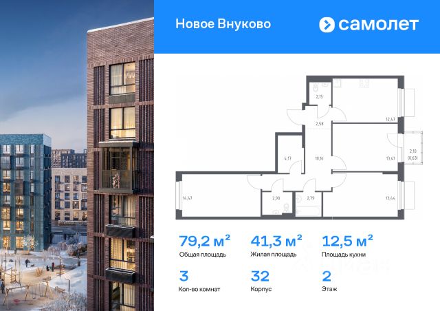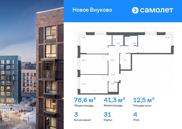Строим кварталы для жизни с заботой о будущем. Предлагается 3-комнатная квартира комфорт-класса 78,6 кв.м в корпусе 28 на 5 этаже, в ЖК "Новое Внуково" Квартира с предчистовой отделкой. Доступность дополнительных опций уточняйте у застройщика. Приобрести квартиру возможно по специальным акциям от застройщика, с текущими условиями акций можно ознакомиться в блоке "Акций". Цена динамическая и может отличаться, уточняйте актуальность у застройщика. "Новое Внуково" — это жилой комплекс в Новой Москве, у подножия берега реки Незнайка. Поблизости — живописные места для прогулок: народный парк "Ручеек", усадьба Старо-Никольское, Валуевский и Ульяновский лесопарки. Часть домов сдана и внутри района уже открыт детсад с бассейном, а в ближайшее время откроются еще 3 детсада, 2 школы и поликлиника. На территории проекта будет построен первый в России Центр Российской Федерации Баскетбола, где будут площадки с трибунами, тренажерный зал, кафе и конференц-зал. Дворы-парки закрыты от машин и посторонних. На территории — прогулочный маршрут вдоль реки Незнайка и набережная с шезлонгами и качелями для отдыха. Также здесь появится плейхаб "Незнайка на Луне", площадь для мероприятий с сухим фонтаном, летним кинотеатром и кафе. В жилом комплексе — монолитные дома высотой от 6 до 14 этажей. Фасады облицованы кирпичом природных оттенков.