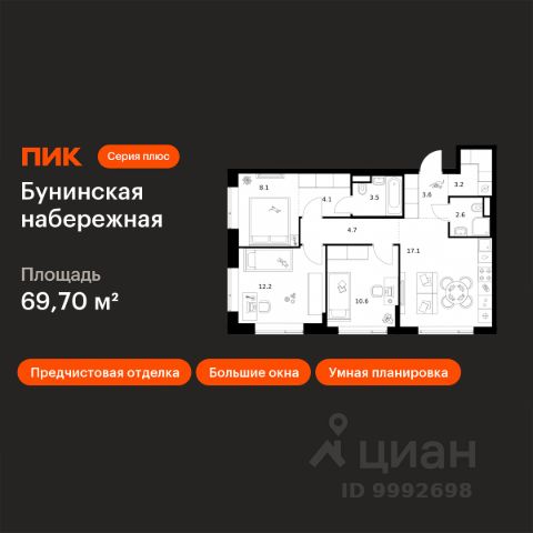 Продаётся 3-комн. квартира площадью 81,2 кв.м на 2 этаже 16 этажного дома (Корпус 2.6/1.5, Секция 5) проекта ПИК Бунинская набережная. Светлый просторный подъезд на уровне земли, функциональная планировка, большие окна, c отделкой. Удобное расположение: 18 минут пешком от м. "Потапово" и 12 минут на автомобиле до станции "Бунинская аллея". 12 минут на автомобиле до трассы Солнцево — Бутово — Варшавское шоссе. 20 минут на автомобиле до МКАД и Калужского шоссе. 1520 минут езды до живописных парков: "Бутовский лесопарк", заказник "Южное Бутово". Особенности проекта Камерный квартал в Новой Москве, на берегу Ивановского пруда. Одна из ключевых особенностей проекта — квартиры с панорамным видом на воду. Архитекторы вдохновились локацией проекта: природные оттенки и активная пластика корпусов напоминают рельефные выступы на берегу, а окна отражают водную гладь, визуально объединяя дома с природой. Преимущества проекта Светлые и просторные лобби с зонами ожидания. Подземный паркинг. Набережная и пешеходная аллея для прогулок. Парк на склоне с игровой зоной. Готовая инфраструктура района: 3 школы, 6 детских садов, взрослая и детская поликлиники. Артикул 969182 (Застройщик ООО СЗ "Стройком")
