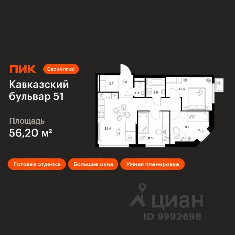 В районе Москворечье-Сабурово продается 3-комнатная квартира площадью 81.1 м². Она расположена на 21 этаже в 261 корпусе нового жилого квартала LIFE Варшавская. Площадь комнат: гостиная — 16,47 м² спальни — 11,55 м², 12,56 м², 13,35 м² кухня — 6,07 м² ванные — 4,06 м², 3,63 м² В LIFE Варшавская мы создали идеальные условия для жизни молодых людей и семей с детьми, тинейджеров и спортсменов, домохозяек и бизнесменов. Жилой квартал LIFE Варшавская удачно расположен: 5 минут до станции "Варшавская" 10 минут до станции "Каширская" 18-25 минут до парка-усадьбы "Коломенское", Битцевского леса и музея-заповедника "Царицыно" Богатая инфраструктура — это визитная карточка проекта. На территории работают детский сад на 160 мест и школа на 900 мест с IT-полигоном и мультифункциональным спортивным стадионом. В квартале разместились пешеходный бульвар, игровой плейхаб "Змейка", спортивный кластер с полями для футбола и волейбола, площадка для выгула животных. На первых этажах жилых домов открыты магазины, кафе и рестораны, салоны красоты, арт-галереи, сервисы бытовых услуг, медицинские центры. Концепция жилого квартала создана ведущими архитектурными бюро. Структуры малоэтажных кварталов дополняются высотными башнями-доминантами. Такой тип застройки позволил сформировать освещенную приватную территорию.