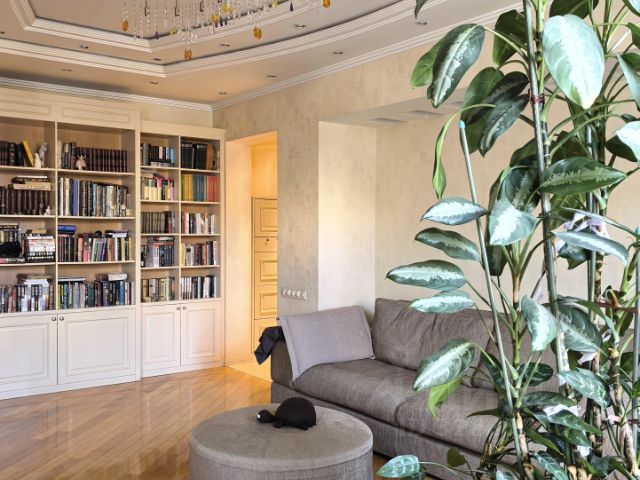 Дизайнерский ремонт выполнен по авторскому проекту в современном стиле с использованием качественных материалов. Полы - дубовый паркет Coswick. Отделка санузлов - керамогранит и плитка премиум-сегмента производства Италии, Испании. Стены декоративная штукатурка.