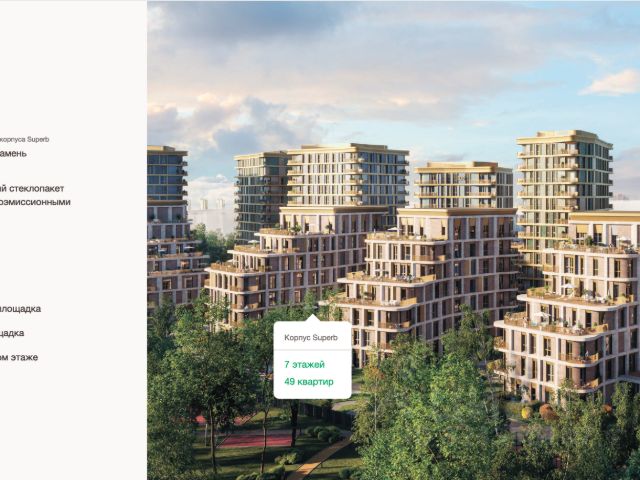 В продаже — двухкомнатная квартира с чистовой отделкой, общей площадью 72,4 кв. м. Квартира расположена на втором этаже десятиэтажного дома класса Оптимум в квартале В17 нового района СберСити, который строит Сбер. Всего в доме — 54 квартиры. Квартал В17 — современная интерпретация голландской архитектуры. Каждый корпус имеет индивидуальный облик. В домах класса Оптимум используется лаконичная крупноформатная облицовка стеклофибробетоном и декоративными металлическими панелями. На верхних этажах расположены квартиры с панорамным остеклением и террасами, с которых открываются виды на город, парки и бульвар. В квартирах предустановлена система "умный дом" — комплекс решений, объединяющий квартиру, дом и прилегающую территорию. Жильцы могут регулировать климат и освещение голосом или со смартфона, установлена защита от протечек. Проведены работы по улучшению шумоизоляции, установлены двухкамерные стеклопакеты с алюминиевым профилем и скрытыми створками. Высота потолков — от 2,7 м, в санузлах — тёплый пол. В доме расположены: • уютное лобби, • коворкинг, • общественная терраса, • детская игровая комната, • лапомойка, • колясочная и велосипедная комната на первом этаже, • подземный паркинг. Квартал В17 состоит из шести корпусов переменной этажности (от 1 до 10 этажей) и 491 квартиры. Корпуса объединены общей подземной частью, где расположен паркинг на 309 автомобилей, места для мотоциклов и более 400 кладовых помещений. Во дворах созданы приватные благоустроенные пространства с ландшафтными композициями, детскими и спортивными площадками, зоной для йоги, прогулочными маршрутами и местами отдыха. Рядом расположен детский сад, парк и набережная Москвы-реки. СберСити — это новый жилой и деловой район на западе Москвы, в одном из самых экологически чистых и престижных мест столицы. Это первая в России и крупнейшая в мире инновационная городская среда, созданная по международным стандартам зелёного проектирования. Здесь внедряются решения в области энергоснабжения, вакуумного мусороудаления, тестирования зелёных технологий, а в дальнейшем — системы искусственного интеллекта для управления домами и городской инфраструктурой. Строительство проекта началось в 2021 году, заселение первых корпусов — с лета 2024-го. Общая площадь территории — 461 га, из них более 2,5 млн кв. м жилья и около 833 тыс. кв. м офисных пространств. Будет построено 7 школ, 13 детских садов и 2 поликлиники. В СберСити будут жить 65 тыс. человек и работать 70 тыс. Развитием территории занимается АО "Рублёво-Архангельское", входящее в группу Сбер. СберСити — место, где хочется жить, работать и растить детей. Переезжайте в СберСити!