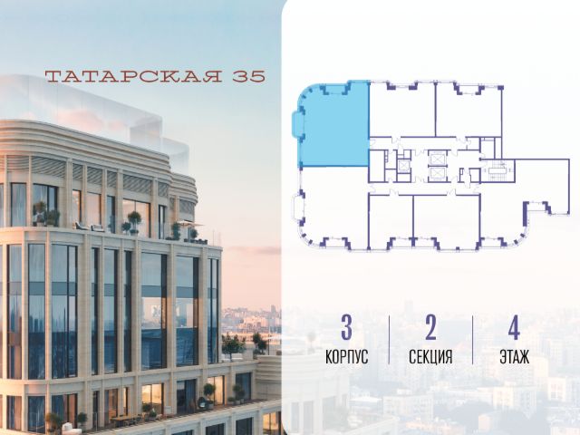 Продается просторная квартира площадью 119.50 м2 в жилом комплексе ТАТАРСКАЯ, 35. Квартира находится в 2 секции корпуса 3. Этаж 4-й из 23. Квартира без чистовой отделки, с просторной кухней 36.30 м2. Жилая площадь 48.20 м2. Высота потолка от 3.50. ТАТАРСКАЯ, 35 - новая архитектурная доминанта Замоскворечья, достопримечательность на фотопанорамах исторического центра Москвы. Элитный дом, созданный для тех, кто умеет смотреть далеко вперед, мыслить масштабно и воплощать собственный сценарий жизни. Вдохновляющие прогулки по променаду набережной, в уютных переулках, в парке "Зарядье", в Михайловском саду и Репинском сквере. Наслаждение высоким искусством в Третьяковской галерее, Доме Музыки, театральном музее им. А.А. Бахрушина, театре на Малой Ордынке. За окнами - Кремль, высотка на Котельнической, панорамы Замоскворечья и острова Балчуг, огни Садового кольца. Собственные спорт-румы, детская, репетиторская, бьюти-пространства, деловое пространство с коворкингом, переговорной и сигарной. Собственный трехуровневый фитнесс-центр с бассейном, тренажерным залом, сауной, хаммамом, массажным кабинетом. Площадь двора - 1,8 га, половина территории покрыта деревьями, кустарниками и лужайками. Дом расположен внутри Садового кольца - отсюда в считанные минуты можно добраться до важнейших мест столицы: достопримечательностей и парков, театров и ресторанов, деловых и административных центров. 7 минут до Кремля на автомобиле, 15 минут до Третьяковской галереи и 8 минут до Садового кольца пешком. Планировочные решения и визуализации предварительны, возможны изменения.