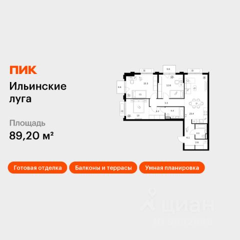 В продаже — трехкомнатная квартира с чистовой отделкой, общей площадью 102,2 кв. м. Квартира расположена на седьмом этаже шестиэтажного корпуса класса Балансд в квартале В17 нового района СберСити, который строит Сбер. Всего в доме — 102 квартиры. Архитектуру корпусов квартала разработало итальянское бюро. В облике В17 читаются черты современной голландской архитектуры: фасады домов класса Балансд облицованы ярким кирпичом и клинкерной плиткой, над первым этажом проходит декоративный пояс из фигурной кладки. Французские балкончики чередуются с широкими окнами, создавая гармоничный ритм. Во дворах — ландшафтные композиции, детские и спортивные площадки, зона для йоги, прогулочные дорожки и места отдыха. Рядом расположены детский сад, парк и набережная Москвы-реки. В квартирах предустановлена система "умный дом" — комплекс решений, объединяющий квартиру, дом и прилегающую территорию. Жильцы могут регулировать климат и освещение голосом или со смартфона, установлена защита от протечек. Проведены работы по улучшению шумоизоляции, установлены двухкамерные стеклопакеты с алюминиевым профилем и скрытыми створками. В санузлах — тёплый пол. Квартал В17 состоит из шести корпусов переменной этажности (от 1 до 10 этажей) и 491 квартиры. Корпуса объединены общей подземной частью, где расположен паркинг на 309 автомобилей, места для мотоциклов и более 400 кладовых помещений. На первом этаже дома — уютное лобби, лапомойка, колясочная и велосипедная комната. СберСити — это новый жилой и деловой район на западе Москвы, в одном из самых экологически чистых и престижных мест столицы. Это первая в России и крупнейшая в мире инновационная городская среда, созданная по международным стандартам зелёного проектирования. Здесь внедряются решения в области энергоснабжения, вакуумного мусороудаления, тестирования зелёных технологий, а в дальнейшем — системы искусственного интеллекта для управления домами и городской инфраструктурой. Строительство проекта началось в 2021 году, заселение первых корпусов — с лета 2024-го. Общая площадь территории — 461 га, из них более 2,5 млн кв. м жилья и около 833 тыс. кв. м офисных пространств. Будет построено 7 школ, 13 детских садов и 2 поликлиники. В СберСити будут жить 65 тыс. человек и работать 70 тыс. Развитием территории занимается АО "Рублёво-Архангельское", входящее в группу Сбер. СберСити — место, где хочется жить, работать и растить детей. Переезжайте в СберСити!