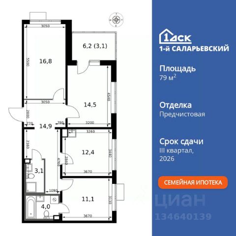 Прямая продажа от застройщика! Жилой Комплекс класса Комфорт+. Продаётся 3-к квартира номер 281 общей площадью 79.9 кв.м. на 12-м этаже 12 этажного здания. Предчистовая отделка. Цена с учётом скидки. Особенности квартиры: - Организуем показ в удобное для вас время! - Мастер-зона с санузлом. Уют и комфорт в одном пространстве. - Угловая планировка - больше пространства для ваших идей. - Увеличенная ширина окна/окон - больше света и визуального простора. - Увеличенное количество окон - дополнительное освещение и свежий воздух. - Душ помимо ванной - дополнительное удобство для вашей семьи. - Увеличенная высота потолков - ощущение простора и легкости. - Можно оборудовать 2 или более рабочих места - пространство для нескольких человек. - Можно оборудовать рабочее место - комфорт для работы и учёбы. - Просторная кухня - место для семейных ужинов и кулинарных экспериментов. - Просторная мягкая зона - комфорт и уют для отдыха всей семьи. - Линейная кухня - функциональность и практичность в одном решении. - Наличие острова на кухне - удобство и стиль для вашей кухни. - Ниша под шкаф - компактное и удобное место для вещей. - Просторная лоджия - идеальное место для уютных вечеров. Квартира с предчистовой отделкой. Вам не придется заниматься черновыми и трудоёмкими работы, а чистовую отделку и дизайн - сделайте на свой вкус. Информация о комплексе: Микрорайон спроектирован по концепции "без машин": безопасные пешеходные зоны, дворы без автомобилей. Для гостей и перевозки грузов - сквозные подъезды с внешней стороны и паркинги на 7 этажах. Безбарьерная среда для колясок и маломобильных групп, повсеместное видеонаблюдение. Удобство и порядок без ущерба для комфорта жителей. Транспортная доступность: "1-й Саларьевский" в Новой Москве: 2 км от МКАД, 5 минут пешком до метро "Саларьево". Удобный выезд на Киевское шоссе для автомобилистов. Рядом ТЦ "Саларис" с покупками и развлечениями для всей семьи. Личный автотранспорт: До Киевского шоссе - 0,2 км До МКАД - 2,4 км До Калужского шоссе - 5 км До Ленинского проспекта - 3,2 км Общественный транспорт: До станции метро "Саларьево" - 7 мин пешком До остановок наземного транспорта - 5-10 мин пешком До Ленинского проспекта на автобусе - 10 мин Внутренняя инфраструктура: Во дворе царит беззаботная атмосфера: магазины первой необходимости, уютные кафе и кофе-пойнты. На бульваре - уличные выставки, шахматные столы и световые качели. Свой детский сад на 225 мест и муниципальная школа на 450 учеников плавно сопровождают взросление детей. Рядом - развитая инфраструктура: фитнес-центры, парки, ТРЦ для шопинга, салоны красоты и рестораны. Всё в шаговой доступности или в паре минут на велосипеде. Идеальная среда для жизни - каждый элемент продуман для комфорта и радости. Квартира с предчистовой отделкой - ваш дизайн без черновых работ