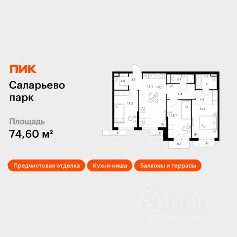 Продаётся 3-комн. квартира площадью 65,8 кв.м на 7 этаже 15 этажного дома (Корпус 57.2, Секция 2) проекта ПИК Саларьево парк. Светлый просторный подъезд на уровне земли, функциональная планировка, большие окна, предчистовая отделка. Жилой район "Саларьево парк" расположен в Новой Москве, в четырёх километрах от МКАД по Киевскому шоссе. Две станции метро: "Саларьево" и "Филатов луг", — находятся в пешей доступности от проекта. Дойти до них можно за 510 минут. В квартале уже создана качественная среда, где есть абсолютно всё для полноценной жизни, работы и отдыха. Благодаря удобному расположению проекта всё важное будет рядом: детские сады, школы, кафе и рестораны, шопинг в торговых центрах, фитнес и даже аэропорт. Все корпуса в квартале гармонично сочетаются, образуя единую городскую среду. Между собой их объединяет невысокая этажность и натуральная цветовая гамма. Здесь приятно гулять и проводить время на улице всей семьёй. В "Саларьево парке" создана уникальная образовательная среда, включающая в себя шесть школ, рассчитанных на 6 250 учеников. Две из них уже открыты, их посещает 2 300 детей. Также на территории "Саларьево парка" находится 12 детских садов, один из которых с бассейном. Сейчас уже открыты 7 садов. В "Саларьево парке" открыта уникальная игровая площадка — PlayHub "Оригами". Здесь есть ручей, горка-труба и рельефные холмы. Взрослые смогут отдохнуть в уютном кафе, пока дети играют. Также на территории проекта есть SportHub — большая спортивная зона, разделённая по интересам и возрастам. Здесь можно заниматься разными видами спорта: футболом, баскетболом, волейболом и стритболом. Зимой центральную часть площадки превращают в каток. Во дворах-парках жилого квартала есть места для отдыха, детские и спортивные площадки. На первых этажах домов расположены магазины, кафе и полезные сервисы. Также вблизи проекта есть несколько масштабных торговых центров. До ТЦ "Саларис" пять минут пешком, до "Рио", Metro Cash & Carry и "Леруа Мерлен" — пять минут на автомобиле. Артикул 1019165 (Застройщик ООО "Специализированный Застройщик "Тирон")