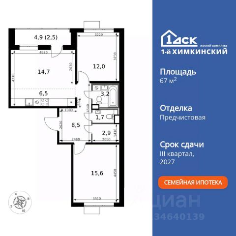 Прямая продажа от застройщика! Жилой Комплекс класса Комфорт. Продаётся 3-к квартира номер 563 общей площадью 67.2 кв.м. на 2-м этаже 16 этажного здания. Предчистовая отделка. Цена с учётом скидки. Особенности квартиры: - Организуем показ в удобное для вас время! - Просторная спальня, в которой можно разместить большую кровать. - Распашная планировка - отличное сочетание удобства и свободы. - Гостевой санузел - комфорт и удобство для ваших гостей. - Евроформат - просторное и удобное жилье с отличной планировкой. - Гардеробная - удобство для хранения и организации вещей. - Просторная лоджия - идеальное место для уютных вечеров. Квартира с предчистовой отделкой. Вам не придется заниматься черновыми и трудоёмкими работы, а чистовую отделку и дизайн - сделайте на свой вкус. Информация о комплексе: "1-й Химкинский": гармония современного города и природы на 102 га у Химкинского леса и канала им. Москвы. Развитая инфраструктура: ТЦ, школы, спорткомплекс с термами и СПА, парк развлечений. Идеальный баланс для жизни в окружении зелени и городского комфорта. Транспортная доступность: ЖК "1-й Химкинский" дает возможность выбрать любой способ передвижения как до города, так и до самых разных объектов, которые могут представлять интерес для его жителей. Не важно, какой способ передвижения вы предпочитаете, успевать всегда и везде можно вне зависимости от выбора транспорта. - 8 мин. пешком (800 м) до остановки "Золотая Арка" -10 мин пешком (1 км) до остановки "Поворот на Ивакино" Внутренняя инфраструктура: Безопасность: закрытые дворы без машин, безбарьерная среда, сквозные подъезды, камеры на детских площадках с трансляцией на смартфон. Отдых: семейный парк развлечений, двухэтажный ТЦ 8 000 м² с фудкортом. Образование: 4 детских сада, 2 муниципальные школы. Спорт: закольцованный веломаршрут, спорткомплекс с термами, тренажерный зал, воркаут зоны. Инфраструктура: поликлиника со станцией скорой помощи, пожарное депо. Паркинг: подземный паркинг, кладовые на -1 этаже, СТО и автомойка на территории. Квартира с предчистовой отделкой - ваш дизайн без черновых работ