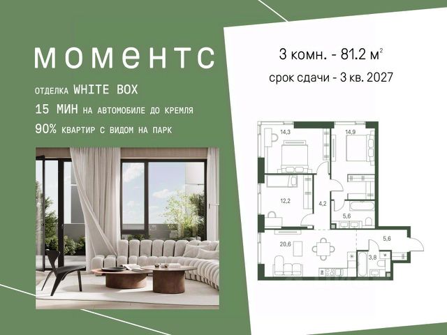 3-комнатная квартира на 3-м этаже 22 этажного дома с дизайнерским ремонтом в ЖК бизнес класса Доминанта, ул. Щукинская, д. 2.