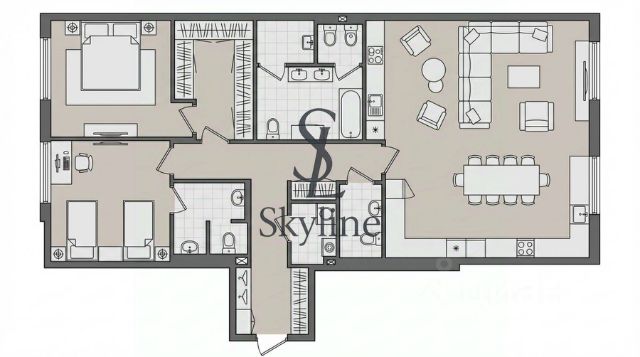 Одна из двух самых просторных квартир в доме: Пентхаус с 3 спальнями, 292 м2, 7 этаж Клубного дома TURGENEV.