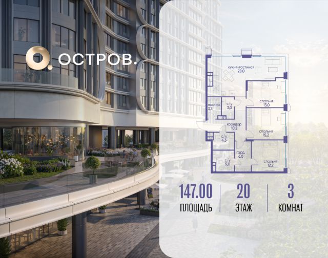 Скидка до 12% действует до 25.12.2025 г. при 100% оплате и не субсидированной ипотеке. Продаётся трехкомнатная квартира от застройщика: общая площадь 98.40 м², жилая 53.10 м², кухня 18.70 м², 6, жилой квартал "Остров 7", корпус 4 (7 квартал) (секция 1). срок сдачи: 4-кв. 2025. , 2 санузла: 2 совмещенных. В жилой зоне 2 больших окна на одну сторону, хорошая инсоляция. Позвоните сейчас и забронируйте квартиру! Купите квартиру в доме у прибрежного парка, в квартале ОСТРОВ.7. Это семь корпусов премиум- и бизнес-класса в одном из лучших мест ОСТРОВА - между бульваром и парком, поблизости от реки. Стильные корпуса имеют узнаваемый вид благодаря бионической пластике фасадов, приподнятых над землей. Для жителей предусмотрены детский клуб, фитнес-рум, коворкинг, переговорные, лаунжи. На крышах устроены видовые общественные пространства с зонами для отдыха и спорта. Двор расположен на двух уровнях: нижний ландшафтный парк и верхняя городская терраса. ОСТРОВ.7 - часть жилого комплекса на западе Москвы, в 15 минутах езды от центра. Это настоящий заповедник посреди большого города, в окружении реки и 650 га заповедников. Здесь все необходимое находится по соседству: от детского сада до супермаркета, от фитнес-зала до серфинг-центра. На территории созданы все условия для отдыха и общения: клубная инфраструктура в домах и дворы-парки, набережные и променады, маршруты для спортсменов, детей и возрастных жителей. В нескольких минутах ходьбы расположена станция метро "Терехово" БКЛ. На автомобиле - 10 минут до Москва-Сити и 15 минут до Садового кольца.