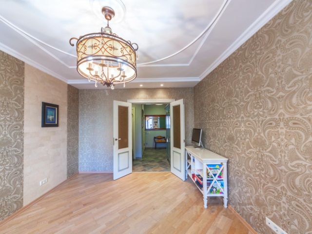 Высота потолков 2.65 м. Потолки под покраску идеально ровные, в некоторых комнатах выполнены дизайн узоры из гипсокартона.