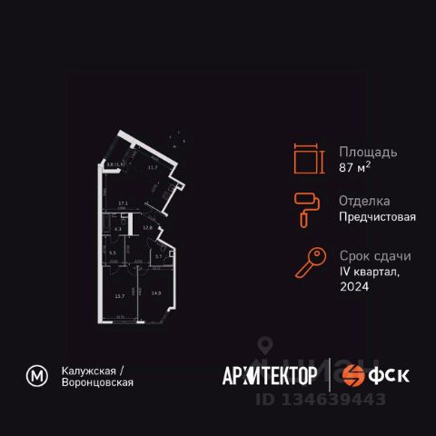 Прямая продажа от застройщика! Жилой Комплекс премиум-класса. Продаётся 3-к квартира номер 315 общей площадью 87.6 кв.м. на 21-м этаже 46 этажного здания. Предчистовая отделка. Цена с учётом скидки. Особенности квартиры: - Идеальная планировка - Лидер продаж - Двухуровневый двор без машин - Идеальная планировка - Скоро ключи! - Организуем показ в удобное для вас время! - Мастер-зона с санузлом. Уют и комфорт в одном пространстве. - Распашная планировка - отличное сочетание удобства и свободы. - Увеличенная ширина окна/окон - больше света и визуального простора. - Угловое остекление - свет и воздушность в каждой комнате. - Гостевой санузел - комфорт и удобство для ваших гостей. - Душ помимо ванной - дополнительное удобство для вашей семьи. - Евроформат - просторное и удобное жилье с отличной планировкой. - Место для игры/занятия спортом - идеальное пространство для активных детей. - Можно оборудовать 2 или более рабочих места - пространство для нескольких человек. - Просторная мягкая зона - комфорт и уют для отдыха всей семьи. - Линейная кухня - функциональность и практичность в одном решении. - Возможность добавить спальное место - дополнительный комфорт для гостей. - Просторная гардеробная - место для вашего личного пространства. - Ниша под шкаф - компактное и удобное место для вещей. - Лоджия - уютное место для отдыха и тишины. Квартира с предчистовой отделкой. Вам не придется заниматься черновыми и трудоёмкими работы, а чистовую отделку и дизайн - сделайте на свой вкус. Информация о комплексе: Уют начинается с подъезда: современные лифты, видео домофон и умный дом в каждой квартире с защитой от протечек и голосовым управлением. Подземный паркинг на 670 мест с прямым доступом и гостевой зоной. Кладовые для идеального порядка. Транспортная доступность: До метро "Калужская" - 12 минут пешком, 14 минут (7 км) до ТТК, 9 минут (6 км) до МКАД, 18 минут (11 км) до Садового кольца. В шаговой доступности до Воронцовского парка Внутренняя инфраструктура: В ЖК продуманная, богатая инфраструктура из трех зон. В основной входной группе сконцентрированы все блага современного мегаполиса: супермаркет, ресторан, фитнес-клуб, аптеки, салоны красоты и кофейня. Под шумные детские игры отведен нижний уровень, мы предусмотрели игры как для самых маленьких, так и для деток постарше. Для досуга взрослых есть места для спорта, занятий йогой, шезлонги и деревянные террасы для отдыха. Квартира с предчистовой отделкой - ваш дизайн без черновых работ