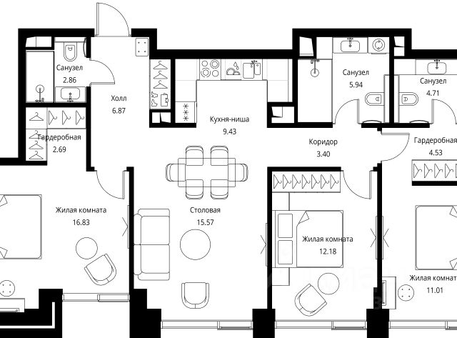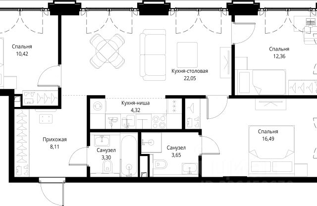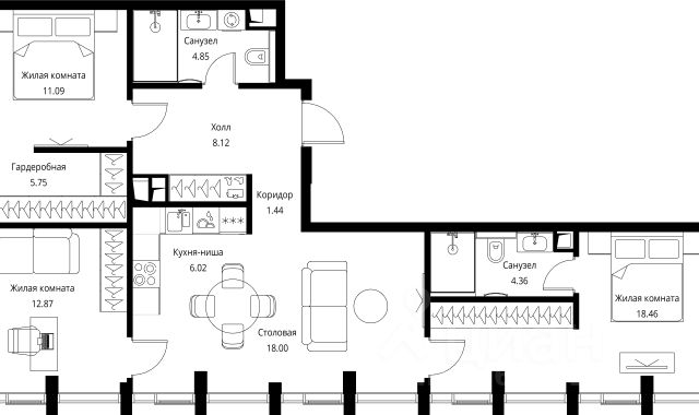 Продаётся 3-комнатная квартира 74 м². В жилом районе ALIA на 26-м этаже 28-этажного дома. Жилой район ALIA — это дома бизнес-класса у слияния Москвы-реки и Сходни. ALIA находится в Покровском-Стрешневе, экологически чистом районе на престижном северо-западе столицы. Район возводится на бывшей территории Тушинского аэрополя, где никогда не было промышленного производства. ALIA — это район разностороннего развития, спроектированный по принципу WORK.LIVE.PLAY.LEARN. Это "15-минутный город", где вся необходимая для комфортной жизни инфраструктура — на расстоянии приятной прогулки. У района удобное расположение: отсюда меньше 10 минут пешком до станций метро "Спартак" и "Тушинская" и всего полчаса на автомобиле до центра города или аэропорта Шереметьево. Архитектурную концепцию ALIA разработало бюро SOM (Skidmore, Owings & Merrill), авторы знаменитой "Бурдж-Халифа". В ALIA больше 140 планировочных решений, среди которых — редкие для Москвы форматы: квартиры с окном в ванной, пентхаус, сити-юниты и таунхаусы. Почти половина территории района отдана под благоустройство. В ALIA три парка: Линейный парк с кафе и магазинами, Центральный парк с амфитеатром, сухим фонтаном и большим плейхабом для детей всех возрастов и Прибрежный парк на собственной набережной, одной из самых длинных в Москве. В каждом урбан-блоке — закрытый внутренний двор с гипоаллергенными растениями и детской площадкой. В лобби каждого жилого корпуса в ALIA оборудована зона ожидания, колясочная, гостевой санузел и лапомойка для домашних животных. За стойкой ресепшена резидентов и их гостей встречает консьерж. Центральное лобби урбан-блока — это стильное общественное пространство с коворкингом, лаундж-зоной и кофе-пойнтом. Это "вторая гостиная" жителей урбан-блока и одно из мест, где формируется комьюнити ALIA. Два ключевых объекта инфраструктуры в ALIA — это спорткомплекс "Чкалов Арена", где представлены 25 видов спорта, и самый большой в стране бизнес-парк класса A, благодаря которому району обеспечено быстрое развитие.