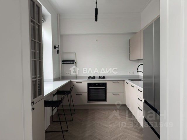 Планировочное решение предусматривает две изолированные комнаты (спальня и детская/ кабинет), уютную гостиную-столовую, отдельную кухню с барной стойкой, также выделена просторная гардеробная, которая решает вопрос хранения гораздо эффективнее шкафов. Качественная отделка (обои под покраску, дюрополимерные плинтуса, качественный керамогранит и плитка, ламинат, двери, натяжной потолок), абсолютно новый дизайнерский свет, кухонный гарнитур со встроенной техникой. В спальне также есть кровать с подъемным механизмом, шкаф, а в гостиной все, что нужно для комфортного отдыха после трудового дня: мягкий диван, тумба, торшер, книжный шкаф.