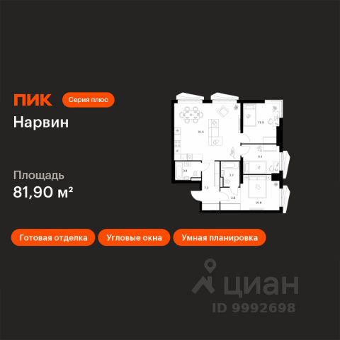 Продаётся 3-комн. квартира площадью 70,9 кв.м на 11 этаже 38 этажного дома (Корпус 1.3, Секция 3) проекта ПИК Нарвин. Светлый просторный подъезд на уровне земли, функциональная планировка, большие окна, c отделкой. Новый проект ПИК Серии плюс "Нарвин" возводится в Головинском районе Москвы. "Нарвин" — камерный квартал из трёх башен с продуманной архитектурой от российского бюро "ГАФА". Каждая башня имеет уникальный строгий силуэт, созданный за счёт чередования цветов и форм. В проекте предусмотрены квартиры с готовой отделкой, умными планировками и разнообразными балконами: французские, открытые, закрытые, а также угловые окна и окна в пол с видами на Головинские пруды. А во дворе — благоустроенная территория, которая обязательно станет местом притяжения для жителей. Рядом много мест отдыха, ведь проект возведён в пешей доступности от торговых центров и парков. Шаговая доступность от станции метро "Водный стадион". Рядом просторные парки, магазины и центры развлечений. Артикул 980168 (Застройщик ООО СЗ "Тратта-Центр")