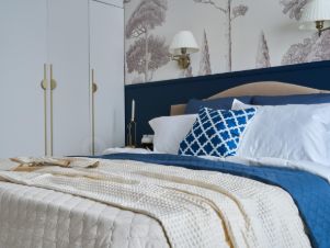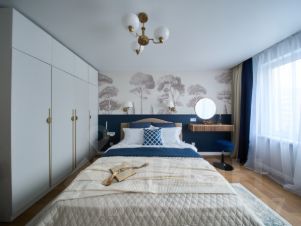Дизайн в трендовом тепло-сером цвете с акцентами синего и бронзы, во всей квартире стены под покраску можете экспериментировать и перекрашивать по желанию! В квартире никто не жил после ремонта.