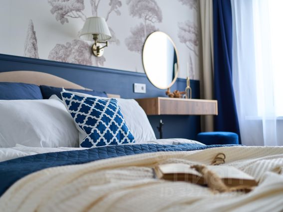 Планировочное решение предусматривает две изолированные комнаты (спальня и детская/ кабинет), уютную гостиную-столовую, отдельную кухню с барной стойкой, также выделена просторная гардеробная, которая решает вопрос хранения гораздо эффективнее шкафов. Качественная отделка (обои под покраску, дюрополимерные плинтуса, качественный керамогранит и плитка, ламинат, двери, натяжной потолок), абсолютно новый дизайнерский свет, кухонный гарнитур со встроенной техникой. В спальне также есть кровать с подъемным механизмом, шкаф, а в гостиной все, что нужно для комфортного отдыха после трудового дня: мягкий диван, тумба, торшер, книжный шкаф.