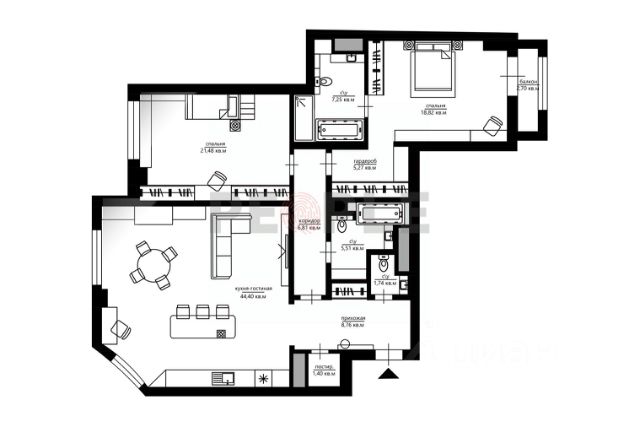• ✓ В базе Циан 2 3-комнатных квартир с дизайнерским ремонтом на улице Троицкая в Москве