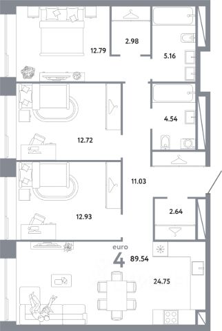 Продаётся 3-комнатная квартира в строящемся доме (ГРИН), срок сдачи: IV-кв. 2027, общей площадью 89.54 кв.м., на 29 этаже.