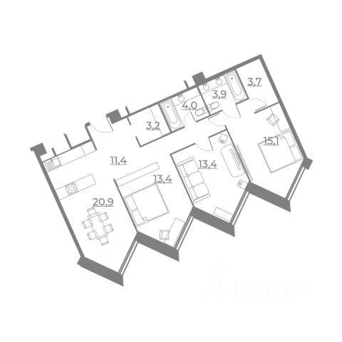 Продаётся 3-комнатная квартира площадью 113.65 кв.м на 3 этаже 19 этажного корпуса Олимп в квартале небоскребов "Апсайд Тауэрс", в квартире предчистовая отделка, c видом на Бизнес-парк Останкино, прогулочный бульвар, детский сад, школу, корпус Монте Бьянко. Номер квартиры В0306.
