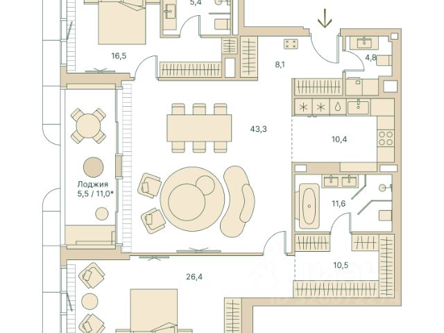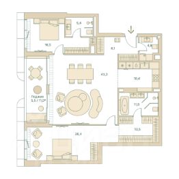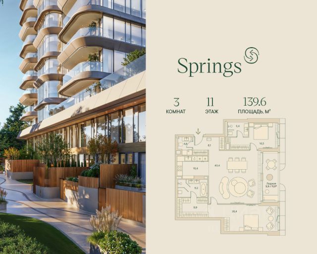 Трёхкомнатная велнес-резиденция площадью 139.6 кв. м. на 11 этаже с видом на центр в доме премиум-класса Springs. В квартире выполнена чистовая дизайнерская отделка. Резиденция наполнена светом и воздухом, благодаря панорамному остеклению и высоким потолкам. На первом этаже дома расположены: - фитнес-центр с бассейном; - СПА с хаммамом; - бьюти-зона с массажным кабинетом. - ресторан. Все сервисы доступны исключительно для резидентов. Всего в 2 минутах ходьбы от дома находится заповедный парк Фили прекрасное место для спокойного и активного отдыха. Зеленый массив, набережная, велотропы и открытые зоны для йоги, а также шахматный клуб, летний кинотеатр, множество беседок и кофеен. До делового комплекса Москва-Сити всего 16 минут, а центр — в 14 минутах езды по Кутузовскому проспекту. Удобный выезд к Рублёвскому шоссе — отличная возможность на выходных сбежать с детьми за город, потратив на дорогу меньше получаса. Концепция благоустройства Springs, разработанная студией Wowhaus, воплощает идею взаимного проникновения парка и озеленения внутренней территории: естественная растительность, дополненная акцентами из цветников, плавно вступает во двор. В сочетании с бионической архитектурой дом является органичным продолжением природного ландшафта парка. Продам 3-комнатную квартиру с евроремонтом на улице Малая Филевская в Москве.