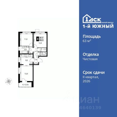 Прямая продажа от застройщика! Жилой Комплекс класса Комфорт Плюс. Продаётся 3-к квартира номер 888 общей площадью 63.3 кв.м. на 14-м этаже 24 этажного здания. Чистовая отделка. Цена с учётом скидки. Особенности квартиры: - МЦД-5 в пешей доступности - Квартал с южным садом - Свои 3 детских сада и 2 большие школы - Распашная планировка - отличное сочетание удобства и свободы. - Увеличенное количество окон - дополнительное освещение и свежий воздух. - Раздельный санузел - больше удобства для всех членов семьи. - Евроформат - просторное и удобное жилье с отличной планировкой. - Кухня-гостиная - идеальное пространство для встреч с близкими. - Линейная кухня - функциональность и практичность в одном решении. - Гардеробная - удобство для хранения и организации вещей. - Ниша под шкаф - компактное и удобное место для вещей. - Лоджия - уютное место для отдыха и тишины. Информация о комплексе: Одно из преимуществ проектов 1- ДСК большие застекленные лоджии. Другое преимущество честный евро-формат. Во всем проекте предусмотрена система Умный дом. В состав устанавливаемого пакета устройств входит: WiFi реле для управления группами потребителей, беспроводной кран перекрытия с эл. приводом, беспроводной сенсор протечки, Яндекс Станция Мини. Его расположение можно назвать удачным за счет транспортной доступности и близости к природным объектам. По соседству лес, а в каждом дворе плодовые деревья. Весной квартал окутывает бело-розовое облако: это цветут яблони, груши, сливы. К августу в воздух наполняется ароматом созревших плодов. Зимой среди покрытых инеем деревьев протянулась лыжня. Транспортная доступность: - Общественный транспорт: Действующая ж/д станция Булатниково (в перспективе будущая МДЦ D5) в пешей доступности, всего 10-12 минут. - Личный автотранспорт: Удобный выезд на трассу М4-Дон в сторону Москвы и области 850 м, до МКАД - 1 км Внутренняя инфраструктура: Красивые продуманные подъезды - еще одно преимущество проекта 1-й Южный. Вход в сквозные подъезды есть и с улицы, и со двора. Благодаря сплошному остеклению в них всегда светло и уютно. Подъезды расположены на уровне земли, поэтому и молодым родителям с коляской, и жильцам с ограниченными возможностями вход и выход неудобств не доставят. В помещении предусмотрено место под стойку ресепшен с выводом инженерных сетей. Если жильцы решат на общем собрании, что необходим охранник или консьерж, организовать для них рабочее место можно быстро и с минимальными затратами. В подъездах предусмотрены уборные для детей и взрослых. Колясочные в каждом подъезде позволяют поддерживать порядок и чистоту на этажах. На случай прогулки с четвероногим питомцем в непогоду в подъездах устроены лапомойки. Во дворах и на общественных территориях 1-ого Южного столько всего интересного для юных обитателей. Собственные 3 детских сада и 2 больших школы буквально под окнами Изюминка проекта - пешеходный бульвар-дендрарий, он идеален для семейных прогулок. По сторонам прогулочной зон