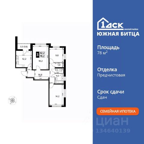 Прямая продажа от застройщика! Семейный жилой район класса Комфорт Плюс Продаётся 3-к квартира номер 752 общей площадью 63.6 кв.м. на 17-м этаже 22 этажного здания. Отделка Whitebox. Особенности квартиры: - Распашная планировка - отличное сочетание удобства и свободы. - Окно в ванной - натуральное освещение для уюта и комфорта. - Увеличенное количество окон - дополнительное освещение и свежий воздух. - Гостевой санузел - комфорт и удобство для ваших гостей. - Раздельный санузел - больше удобства для всех членов семьи. - Гардеробная - удобство для хранения и организации вещей. - Лоджия - уютное место для отдыха и тишины. Квартира с предчистовой отделкой (White box). Вам не придется заниматься черновыми и трудоёмкими работы, а чистовую отделку и дизайн - сделайте на свой вкус. Информация о комплексе: Сочетание свободного перемещения по внутреннней территории без машин и ощущения абсолютной безопасности благодаря надежным ограждениям - вот что отличает ЖК Южная Битца. На территории комплекса созданы все условия как для активного образа жизни, так и для спокойного времяпрепровождения. Свободно перемещайтесь по внутренней территории в безбарьерной среде! Продуманное зонирование во дворах позволяет отделить тихие зоны для родителей со спящими младенцами и тех, кто хочет почитать на свежем воздухе, от шумных игровых зон. Игровые зоны учитывают возраст детей. Площадки для детей старшего возраста вынесены за пределы дворов. Ощущение уютного дома должно начинаться с подъезда. Мы постарались предусмотреть все нюансы, чтобы наши лифты отвечали самым строгим современным требованиям. А наличие кладовых позволит вам поддерживать идеальный порядок и уют в вашей квартире! Транспортная доступность: В 3 км от МКАД в нескольких минутах езды до трех станций метро: Аннино, Бульвар Дмитрия Донского, улица Старокочаловская и станции МЦД2 - жд Бутово. Внутренняя инфраструктура: Для жителей жилого района "Южная Битца" доступна развитая инфраструктура близлежащих московских районов Чертаново, Южное, Бирюлёво Западное, Северное Бутово и Южное Бутово. Множество образовательных учреждений, объекты здравоохранения, торговые и развлекательные центры, кинотеатры, кафе, рестораны, парки.