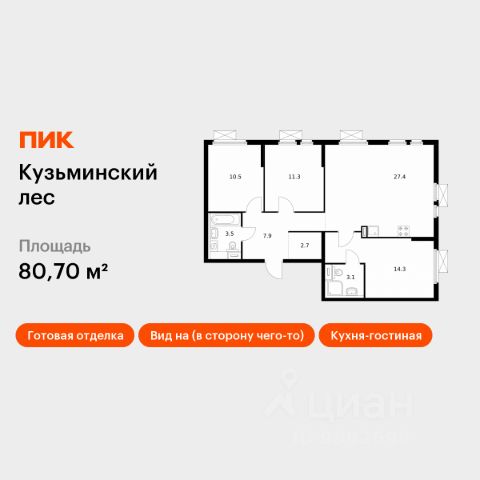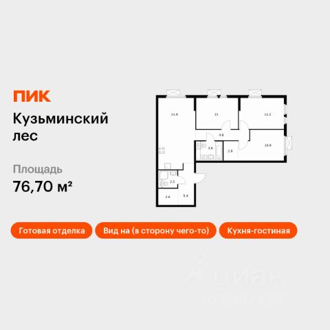 Продаётся 3-комн. квартира площадью 76,7 кв.м на 20 этаже 25 этажного дома (Корпус 12, Секция 1) проекта ПИК Кузьминский лес. Светлый просторный подъезд на уровне земли, функциональная планировка, большие окна, c отделкой. Жилой квартал "Кузьминский лес" находится в Московской области, в городе Котельники. Отсюда за 18 минут можно дойти до метро "Котельники", а за 5 минут — доехать на машине до МКАД. В проекте — жилые дома с уютными дворами, школа, детский сад, подземные и гостевые паркинги. Вокруг — развитый район с детскими садами, школами и поликлиниками. Рядом есть стадион, "МЕГА Белая Дача" и гипермаркеты Selgros, Castorama и Real. Отдохнуть от городской жизни можно в Кузьминском парке и усадьбе "Белая Дача", которые совсем недалеко от "Кузьминского леса". Артикул 582252 (Застройщик АО "Компания АТОЛ")