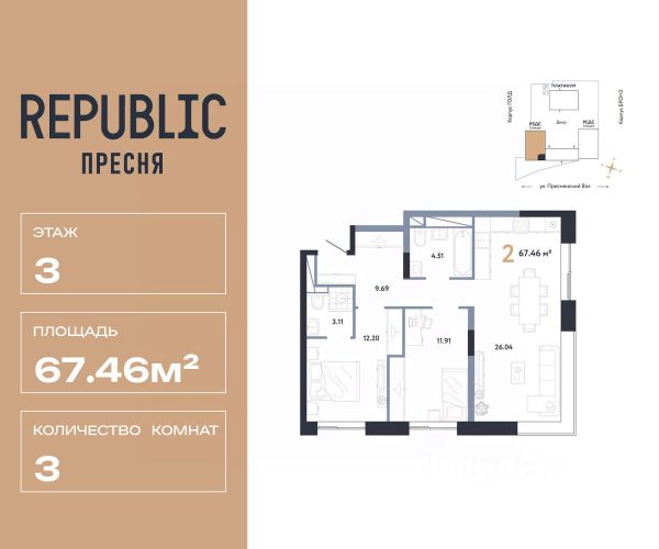 Предлагаю Вашему вниманию трёхкомнатная квартиру с элегантным ремонтом в историческом районе г. Москвы с эксклюзивной локацией- первая линия Краснопресненской набережной, общей площадью 103,4 на 8м этаже 11-этажного кирпичного сталинского дома построенного в 1954 году в стиле позднего сталинского ампира по проекту архитектора Иосифа Ловейко. На площадке всего две квартиры, в подъезде два входа (парадный и во двор) и два пассажирских лифта.