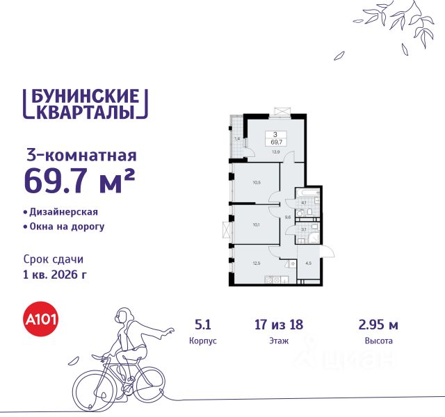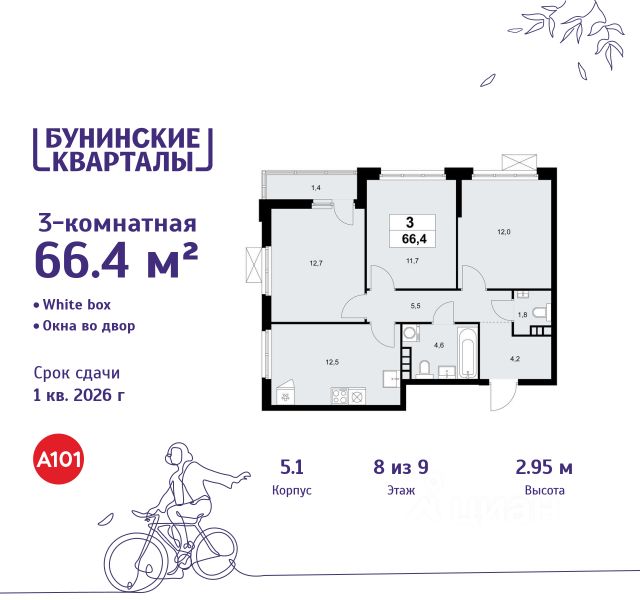 Продается трехкомнатная квартира 383 в новостройке ЖК "Бунинские кварталы" по адресу Москва, ТиНАО, Новомосковский АО, Сосенское С/П, жилой комплекс Бунинские Кварталы, 5.1, район Коммунарка, Новомосковский административный округ, Москва. Общая площадь квартиры - 70.20 кв. м., этаж 8 из 9, секция 5. Тип проекта, по которому построен дом - монолит, компания-застройщик - ООО "А101". Стоимость квартиры - 26554554 Р. Срок сдачи - 2 квартал 2026. ПРЕДЛОЖЕНИЯ ОТ ЗАСТРОЙЩИКА В ФЕВРАЛЕ 2026: Скидки до 10% на все квартиры. Только в офисах продаж до 28 февраля. Ипотека от 13,9 % для всех! На весь срок. "Семейная ипотека" вернулась. Ставка от 3,5 % на весь срок! Без удорожания! Выгодное ипотечное комбо: Ипотека от 2200 р./мес. и от 6 % после рождения ребёнка! Ипотека для всех "Держи пять!" - ставка 5 % на 2 года! *более подробную информацию по скидкам и акциям уточняйте в отделе продаж ЖК "Бунинские кварталы" строится на юго-западе Москвы. Монолитные дома в лаконичной стилистике гармонируют с живописной природой. Из любой точки района удобно добираться до природных объектов, ключевых транспортных узлов, крупных торговых, спортивных, деловых и медицинских центров. Концепция уникального благоустройства района - "Выходи гулять!". Здесь появятся эстрада для районных творческих мероприятий, спортивные и игровые площадки, скейт-парк, дружелюбные пространства для домашних питомцев, благоустроенная набережная Ивановского пруда. В районе формируется собственная развитая инфраструктура: современные школа на 1100 мест и 2 детских сада на 540 малышей, магазины у дома и сетевые супермаркеты, фитнес, кафе, салоны, детские развивающие центры. Крытый каток "Самолёт Арена" - в 10 минутах пешком. За 15 минут можно дойти до действующей станции метро "Потапово". Предусмотрены удобные автомобильные выезды на проспект Куприна и улицу Александры Монаховой. Особенности "Бунинских кварталов": - ст. метро "Потапово" - 15 минут пешком - своя школа и детские сады - безопасные дворы без машин с системой контроля доступа - насыщенная инфраструктура - в шаговой доступности и на первых этажах домов