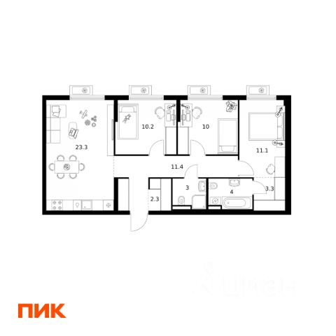 • ✓ В базе Циан 259 3-комнатных квартир с евроремонтом рядом с метро Жулебино